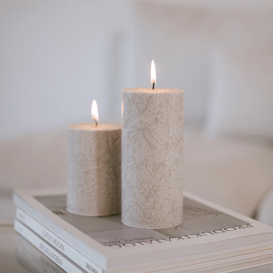 In unserer Kerzenrubrik: Pflanzliche Blockkerzen aus Olivenöl in verschiedenen Farben – wie unsere Blockkerze Olive in Grau. Das Wachs aus Olivenöl verleiht den Kerzen eine besondere, zarte Struktur, die sie zu einem echten Blickfang macht. Mit einem Durchmesser von 7 cm passen sie perfekt in unsere Kerzenbretter. Ein weiterer Tipp: Dekoriere die Kerzen auf Tabletts oder in Windlichtern, um eine gemütliche Atmosphäre zu schaffen und dein Zuhause in wundervollen Kerzenschein zu tauchen.