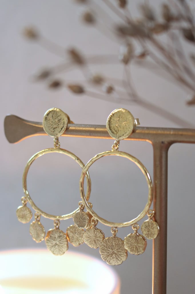 Ohrenstecker  mit Kreis hängend mit fünf Plaquetten