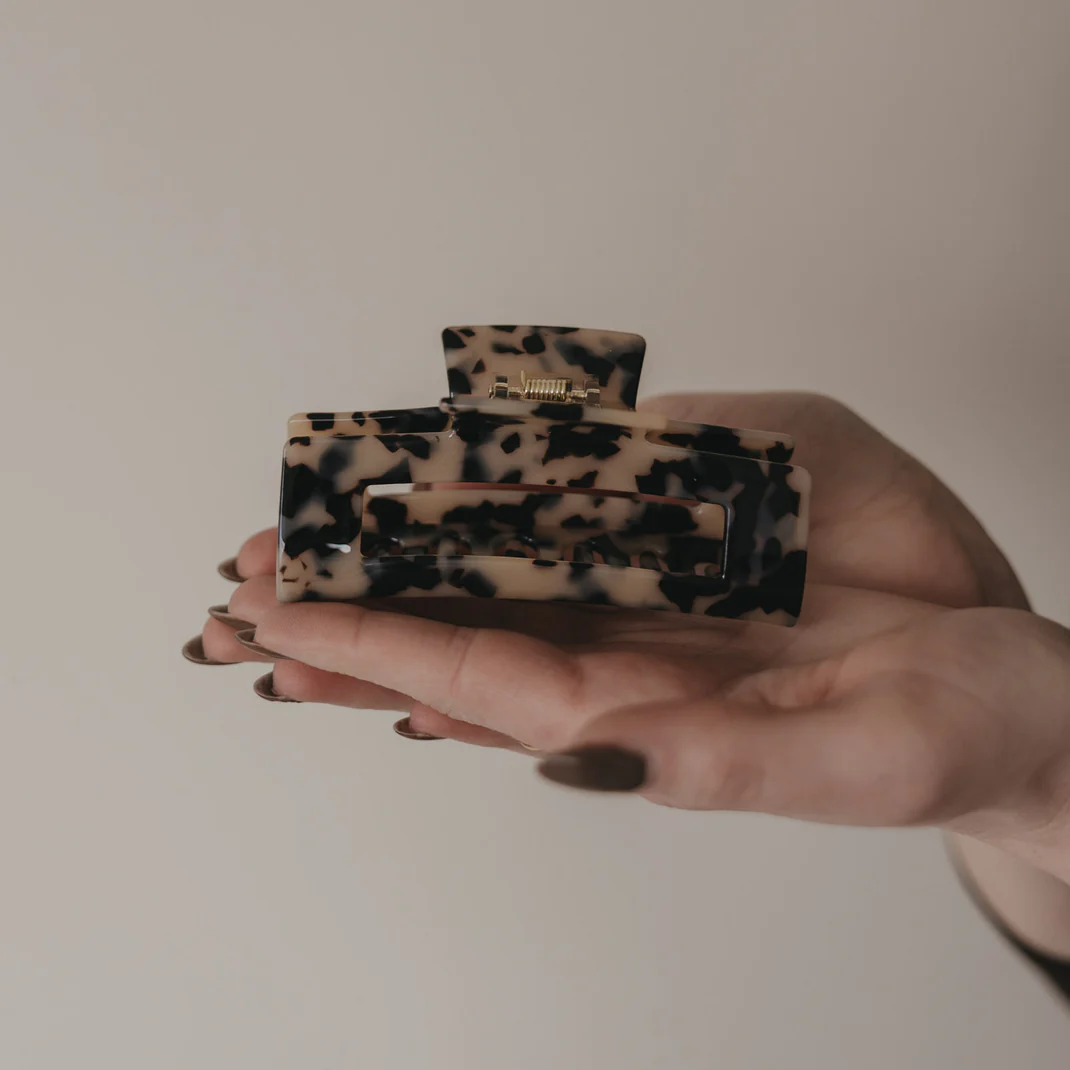 Die Haarspange eckig maxi Leo ist ein echtes Statement-Piece. Mit ihrem ausdrucksstarken Muster und der großzügigen Form wird sie zum Blickfang in jedem Styling.