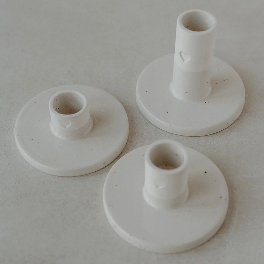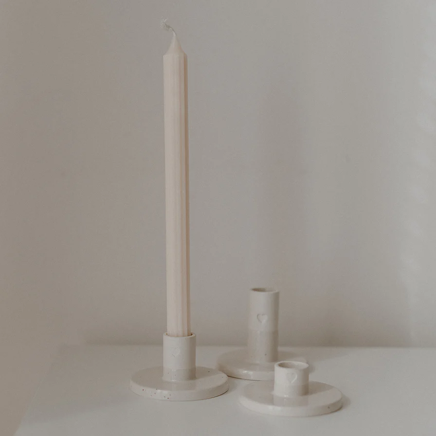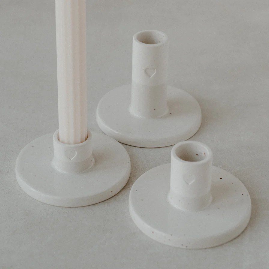 Verschenke Liebe mit unserem Kerzenständer Herz mittel. Unsere neuen handgefertigten Kerzenständer sind die ganz besondere Dekoration für deinen Wohlfühlort. Passend für Stabkerzen mit einem Durchmesser von 22mm und mit der ganz besonderen Herz Blindprägung, wird dein Zuhause in gemütliche Stimmung versetzt. Perfekt für romantische Abende, den gedeckten Esstisch oer auch die Dekoration für das Sideboard. Auch toll: unsere Herz Kerzenhalter sind die perfekte Tischdekoration für jede Hochzeit. Unseren Kerzenständer Herz gibt es in 3 verschiedenen Größen. Dekoriere zusammen und gestalte so eine wundervoll harmonische Atmosphäre.