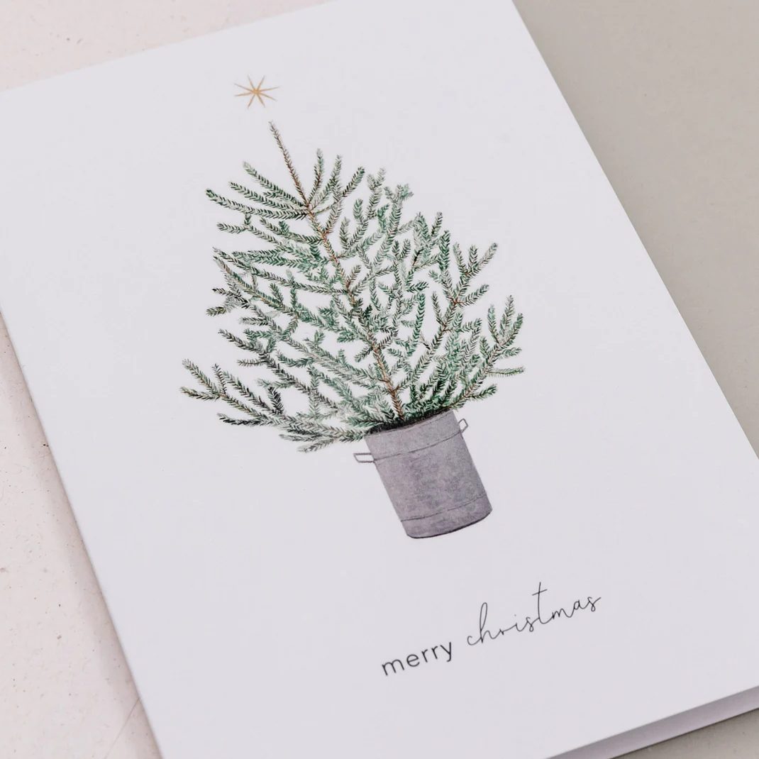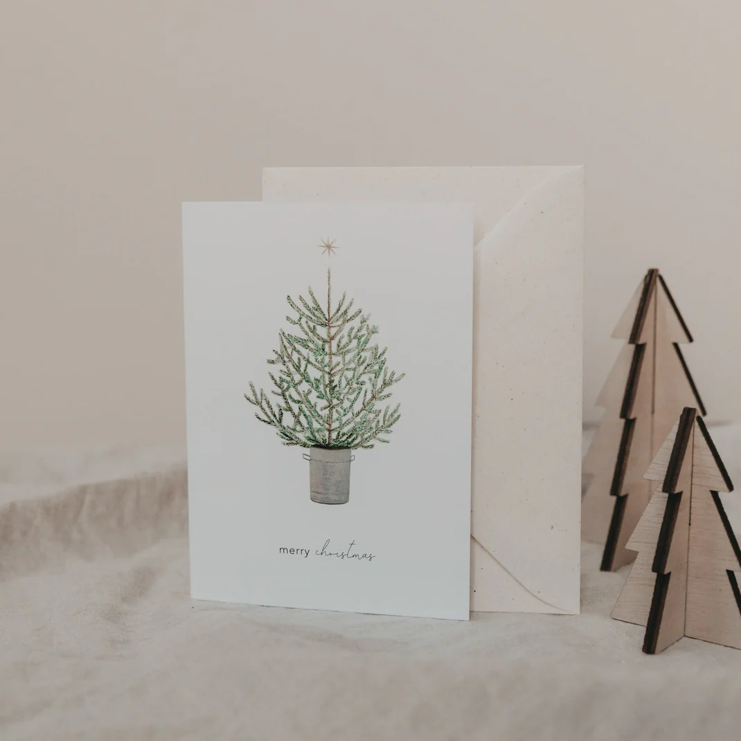 Unsere Klappkarte Weihnachtsbaum vereint klassische Eleganz mit festlicher Stimmung. Der stilvoll designte Weihnachtsbaum und der Schriftzug „Merry Christmas“ machen diese Karte zu einer zeitlosen Wahl für deine Weihnachtsgrüße.