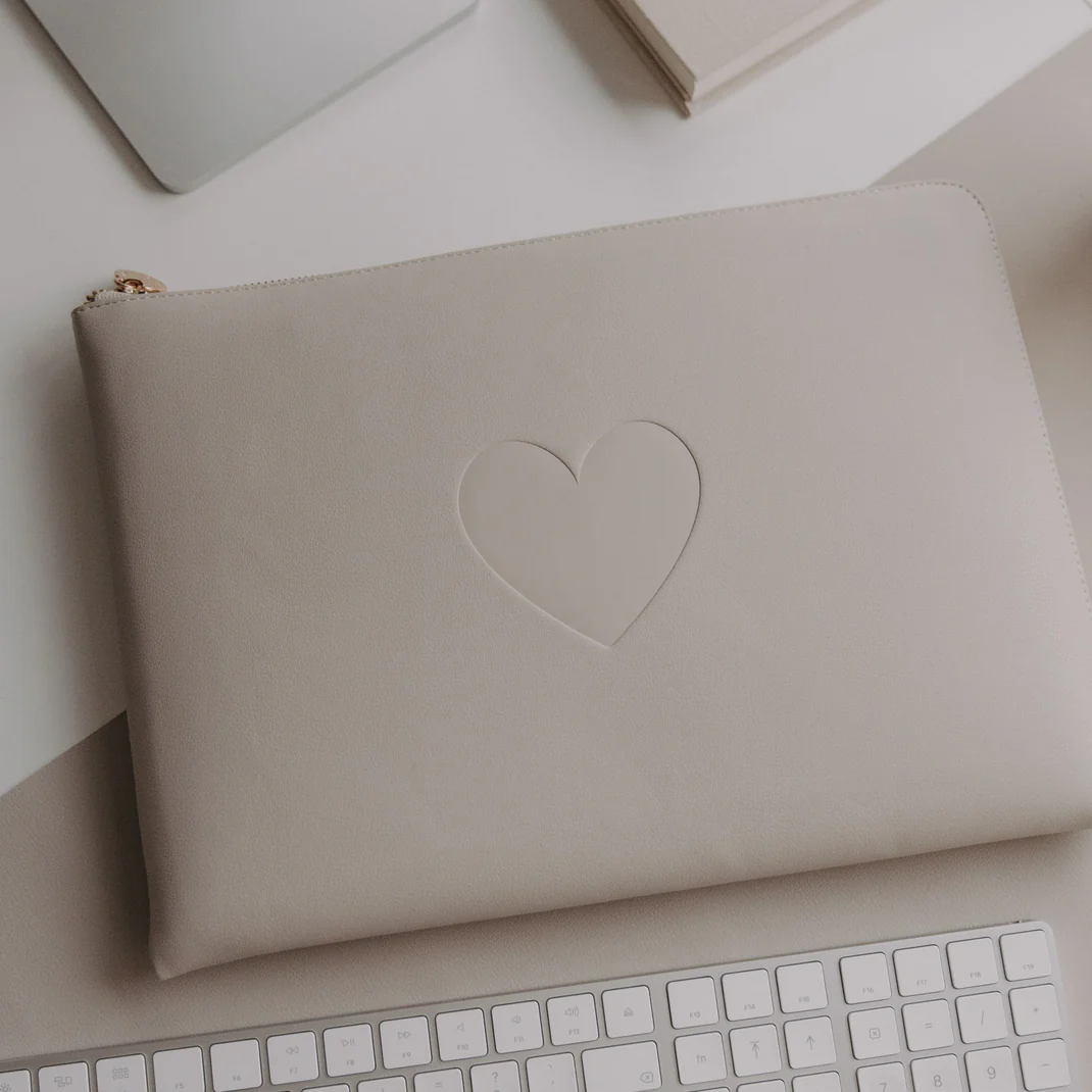 Unsere Laptoptasche Herz taupe ist der perfekte Begleiter für deinen Alltag – stilvoll, durchdacht und voller liebevoller Details. Ob im Büro, in der Uni oder unterwegs ins Lieblingscafé: Sie schützt deinen 13-Zoll-Laptop zuverlässig vor Kratzern, Staub und leichten Stößen und sieht dabei einfach wunderschön aus.