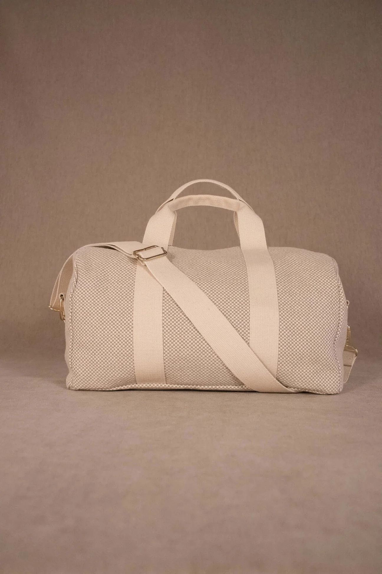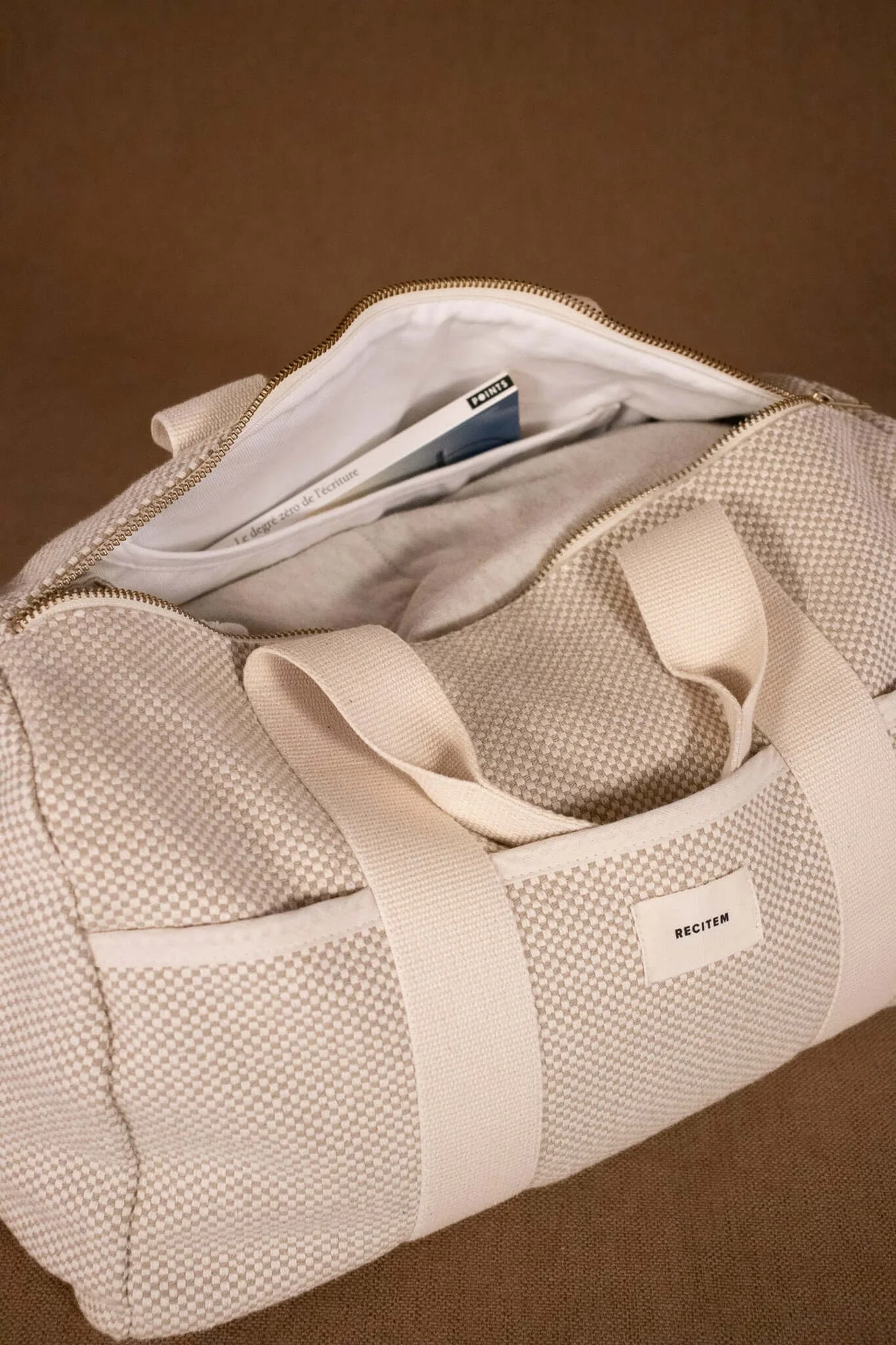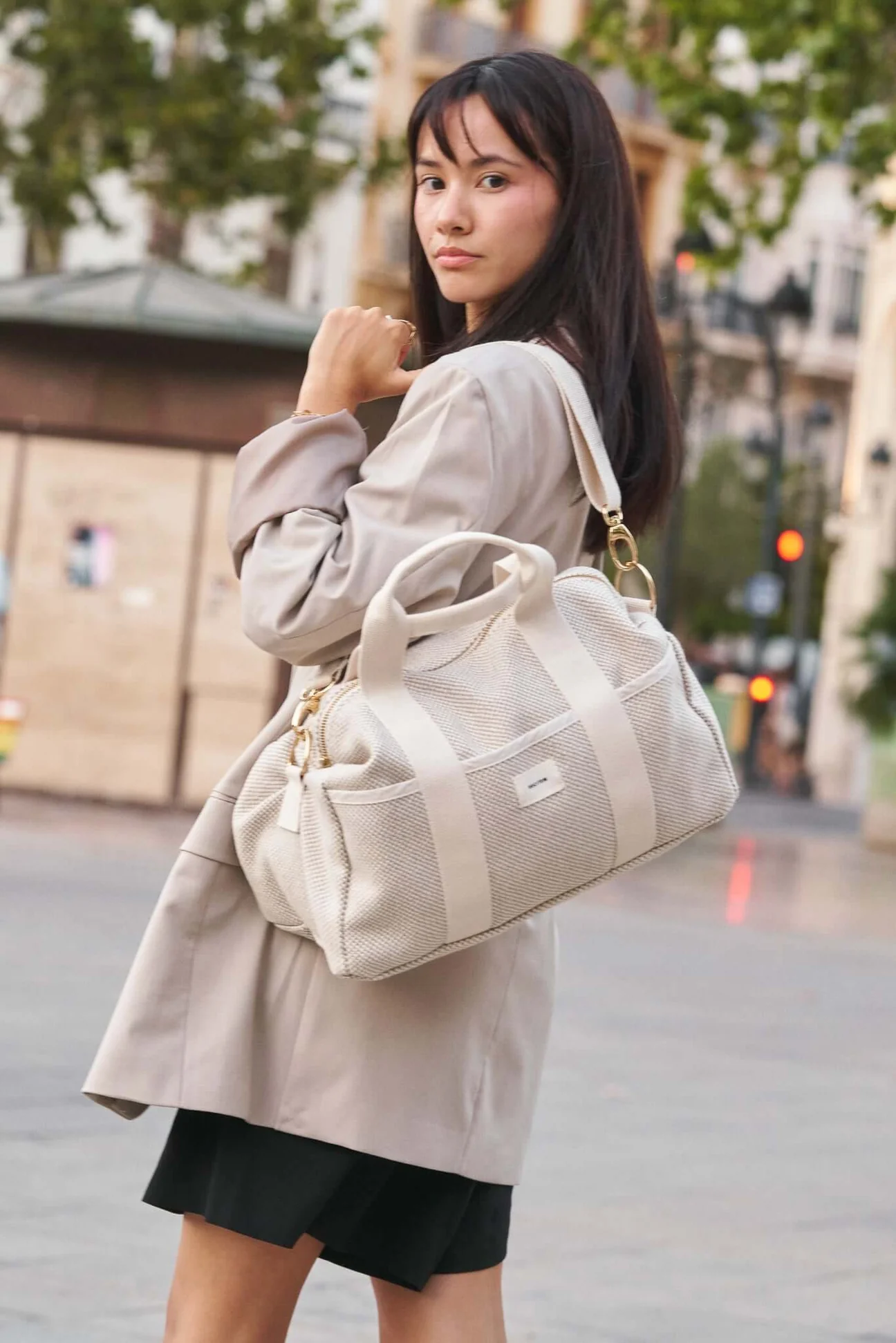 Elio Reisetasche für 24 Stunden aus beiger und ecrufarbener Baumwolle.