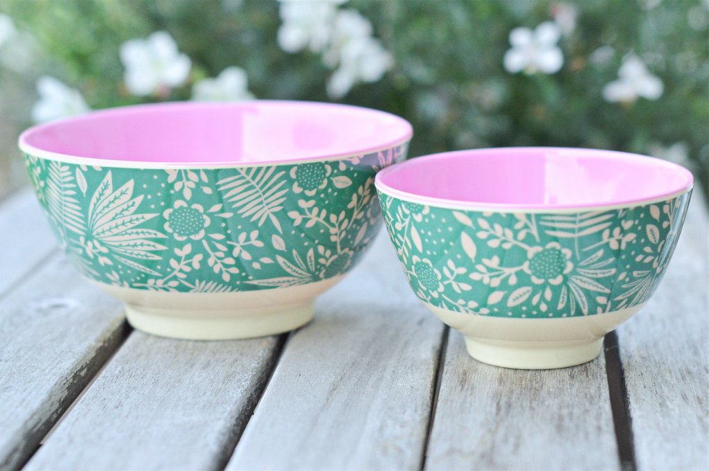 Rice Schüsselchen mini oder mittel grün mit Blumen creme