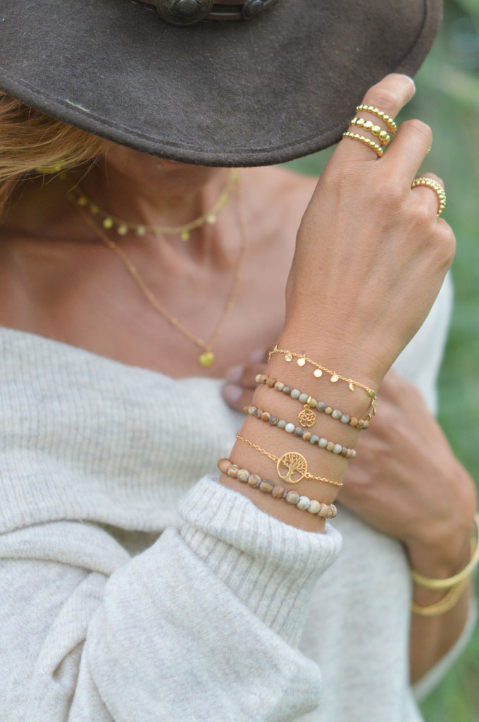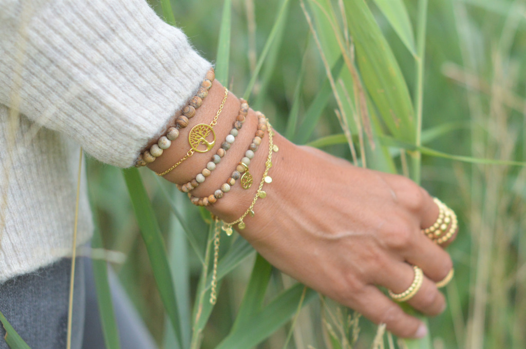 Landschaftsjaspis 4 mm mit Baum des Lebens anhängerli Silber 925 vergoldet