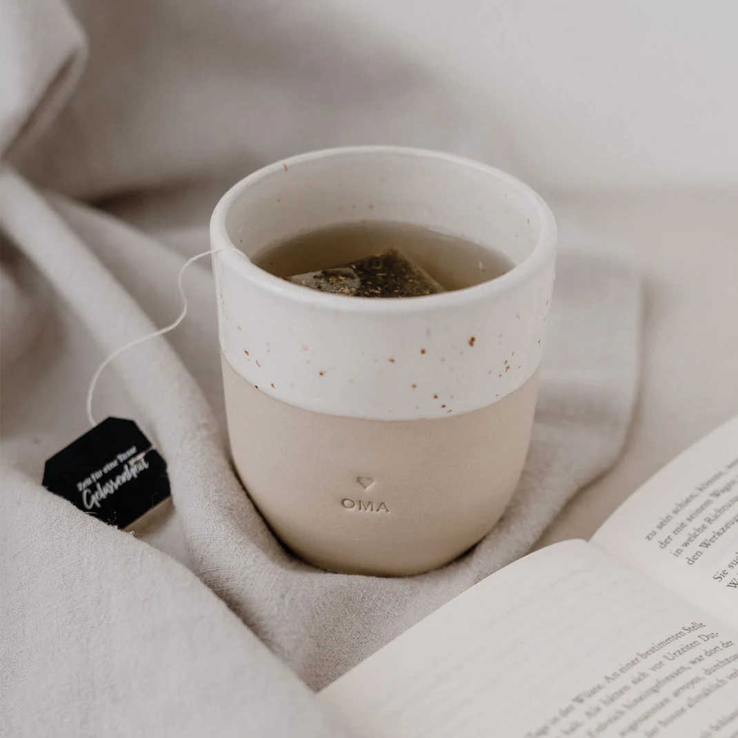 Wir haben sehr viel Herzblut in eine neue Kollektion gesteckt, die von der Form, dem Ton, dem Glazing, sowie dem Design von uns entwickelt wurde. Eine kleine Töpferei aus Portugal produziert diese wundervollen Becher in liebevoller Handarbeit & ist ein großartiger neuer Begleiter auf unserem kreativen Weg. Unsere Becher lassen die Herzen höher schlagen, die die Individualität von Ton & Glasur lieben, denn jeder einzelne Becher hat seinen ganz eigenen Touch. Da alle Becher mit der Hand gefertigt, gebrannt, geprägt, abgeschliffen, geglazt & nochmal gebrannt werden, gibt es Unterschiede in der Drucktiefe, in der Höhe sowie der Geradlinigkeit. Das minimalistische Design und die natürlichen Farbnuancen werden von einer wunderschönen Blindprägung „Mama“ abgerundet. Wir sind verliebt & voller purer Freude & können es kaum abwarten unsere neue Kollektion in Euren Händen zu sehen! Unser Becher Oma ist das perfekte Geschenk für jede Omi!
