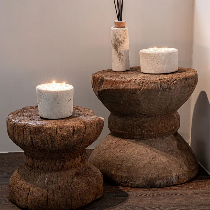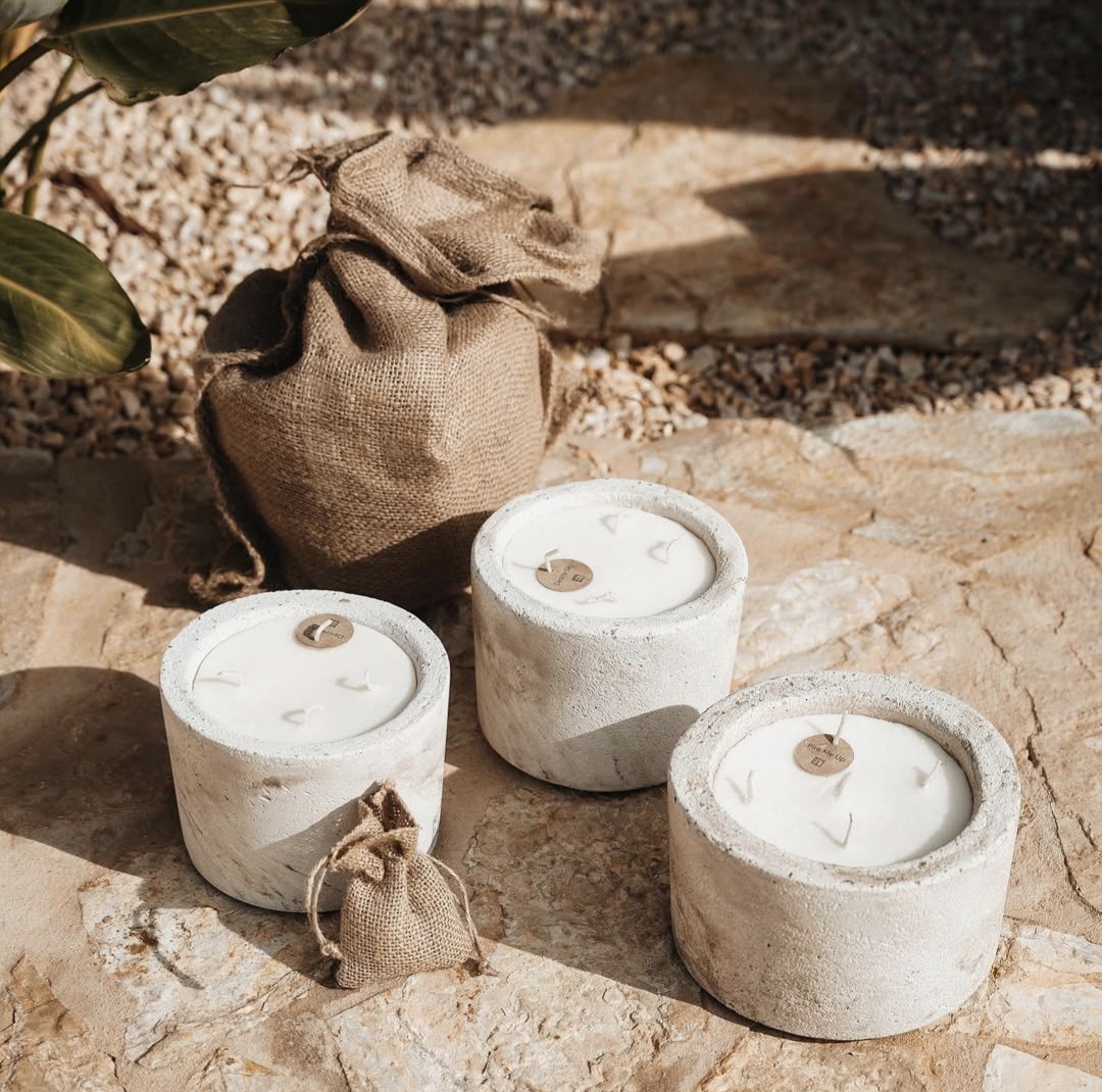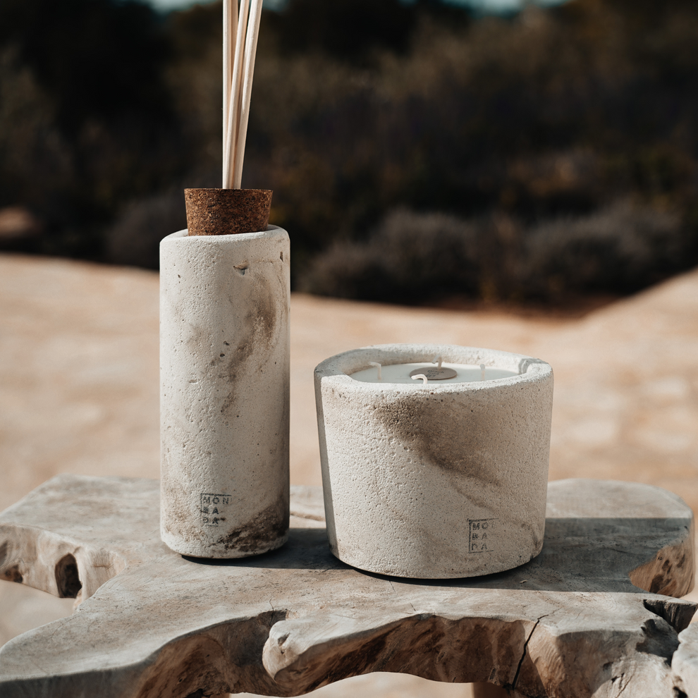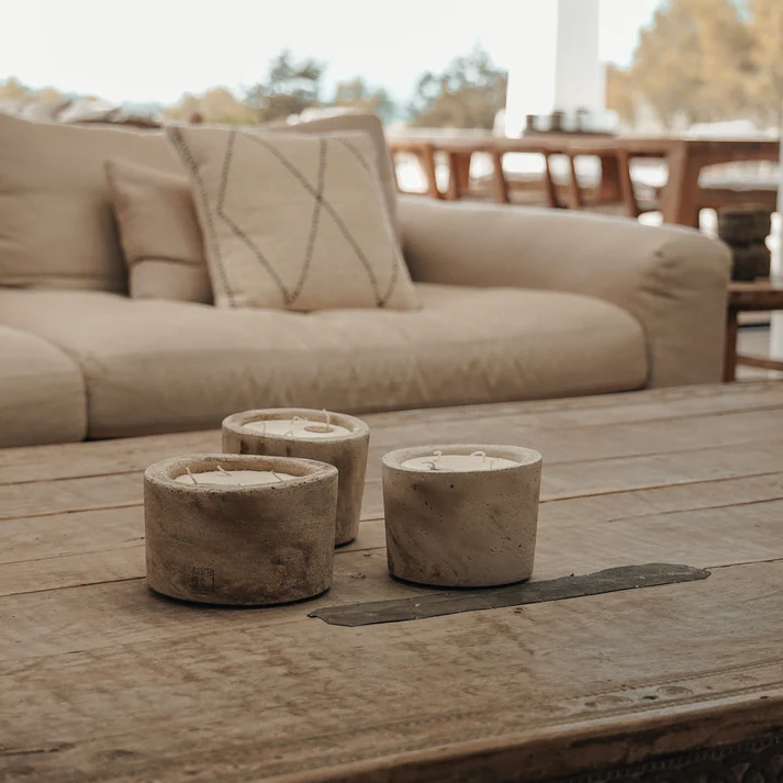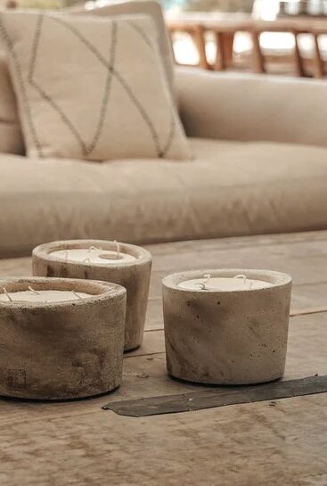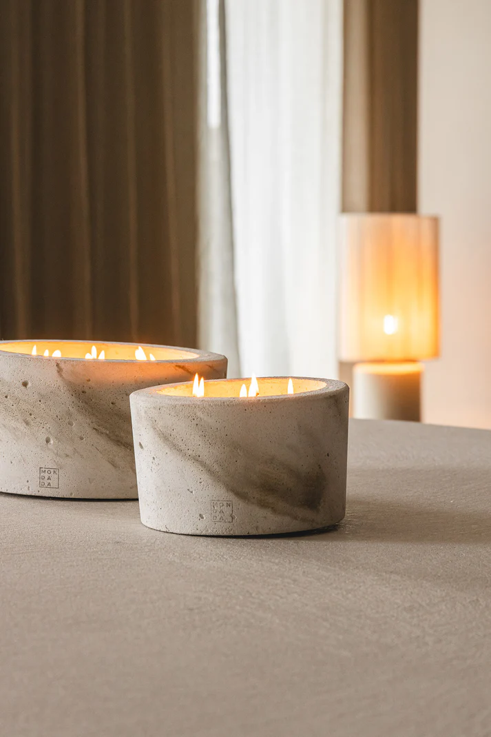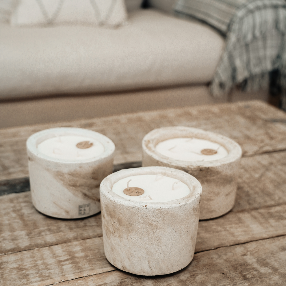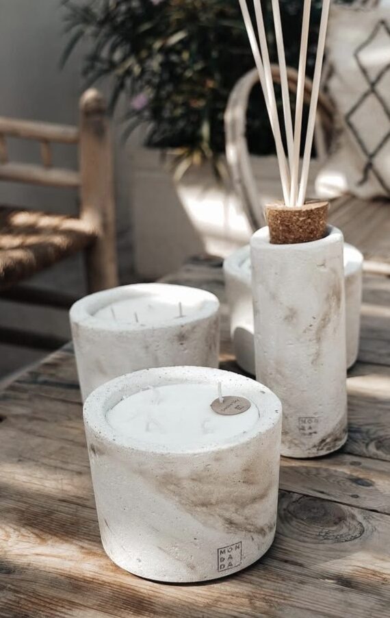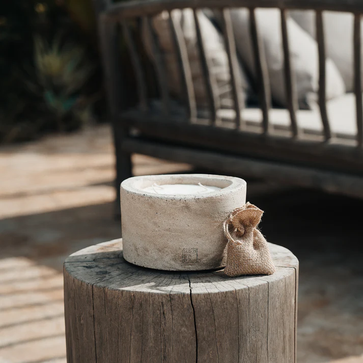 Handgefertigte Duftkerze aus Beton für den Innenbereich. Alle unsere Betonkerzen für den Innenbereich werden in einer edlen Holzgeschenkbox geliefert.